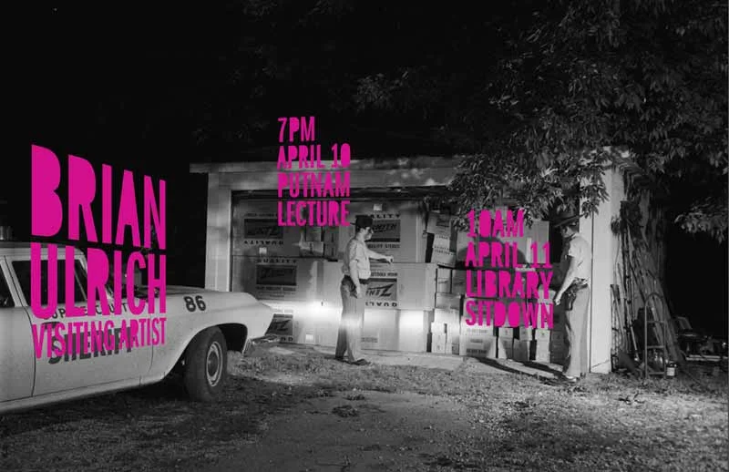 In Spring 2014, Jon Gitelson of KSC approached Randall Hoyt with a project— design a poster for the visiting artist, Brian Ulrich. Randall set up a competition for a number of students to design the poster, and had Jon himself chose the winner. After several comps and minor adjustments, my poster was chosen.